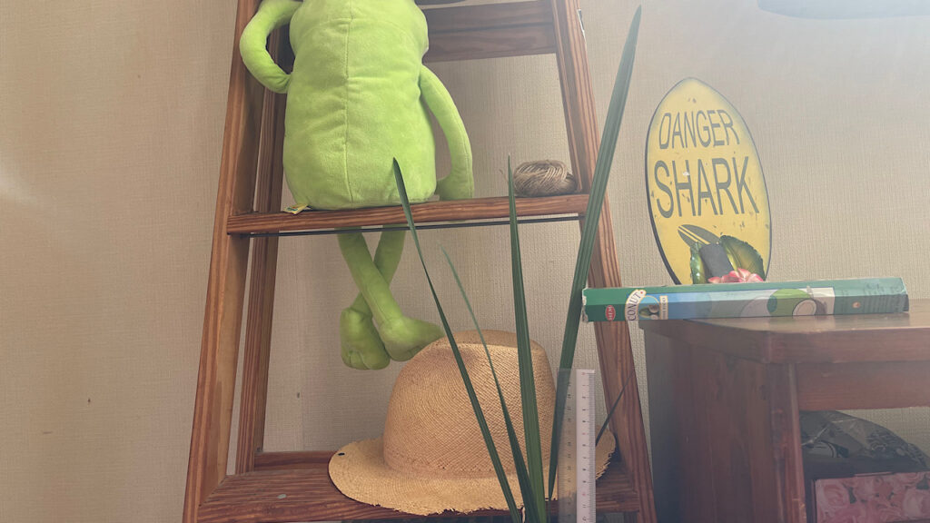 葉っぱに寄りかかっているのが30cm定規です。冬の間はそんなに伸びないですが、夏になるとグインって伸びるような気がします。さすがヤシの木の子供。