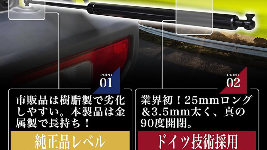 見た目はめちゃくちゃシンプルですが、縁の下の力持ちといった感じです。「バックドアをゆっくり・好きな位置で・安全に開閉させる」これだけですが、これが良いです。